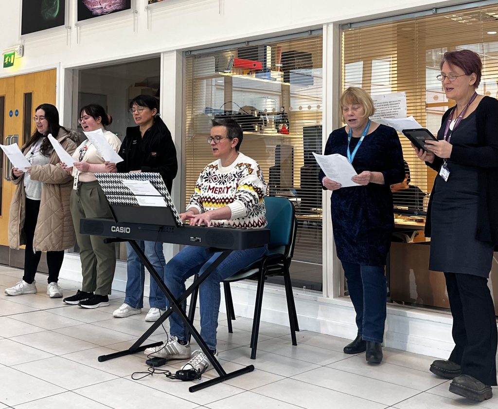Alongside the various eco-crafting stations, a small choir led by Dr Joanne Pennock was warming up for a short performance to close the event. Their selection of non-denominational festive songs captivated the audience and even inspired some to join in with the singing.
