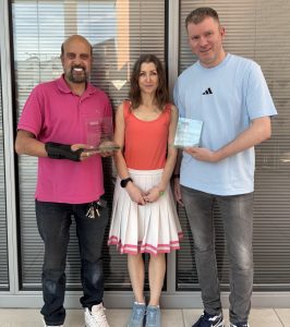 Left to right: Jav Rehman, another highly commended recipient; Dr Leah Quinlivan, project lead and research fellow at the NIHR GM PSRC; Dan Stears, public contributor and Non-Executive Lay Board Member of the NIHR GM PSRC at the 2025 PPIE Celebration Event.