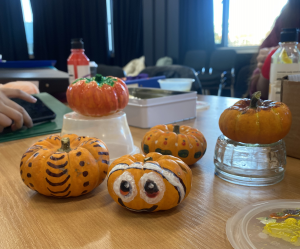 Pumpkin painting activity at the Halloween DIY Decoration workshop. (Photo credit: Sara Shaqiri)